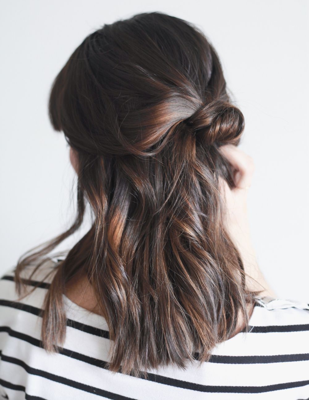 This one adds a touch of a romantic twist. Take two front sections of hair, twist them back toward the center of your head, and gather them into a bun with the rest of your hair. This creates a soft, feminine look that gives the impression you put in much more effort than you actually did. Ideal for both casual days and special occasions.