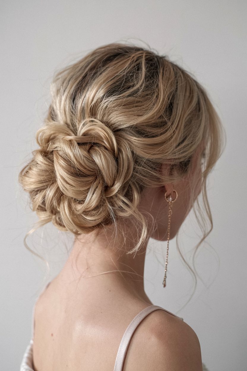 Looking for something a little more elegant? The low twisted bun is a simple style that looks far more polished than it actually is. Part your hair down the middle, twist sections from both sides toward the nape of your neck, and wrap them into a bun. Pin it in place and you’re done. It’s sleek, timeless, and perfect for work meetings, date nights, or formal events.