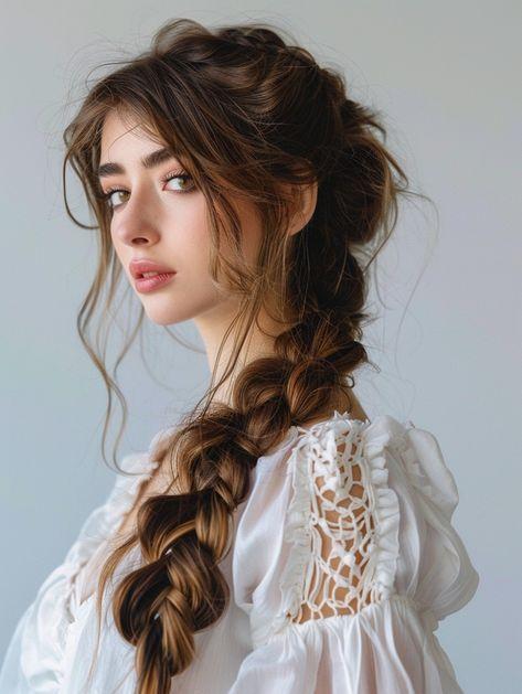 For an easy, romantic style, sweep your hair to one side and braid it loosely down over your shoulder. This look is perfect for relaxed weekends, outdoor events, or when you want something sweet and effortless. Pancake the braid by gently tugging on the strands to add volume, thus giving it that soft, undone look.