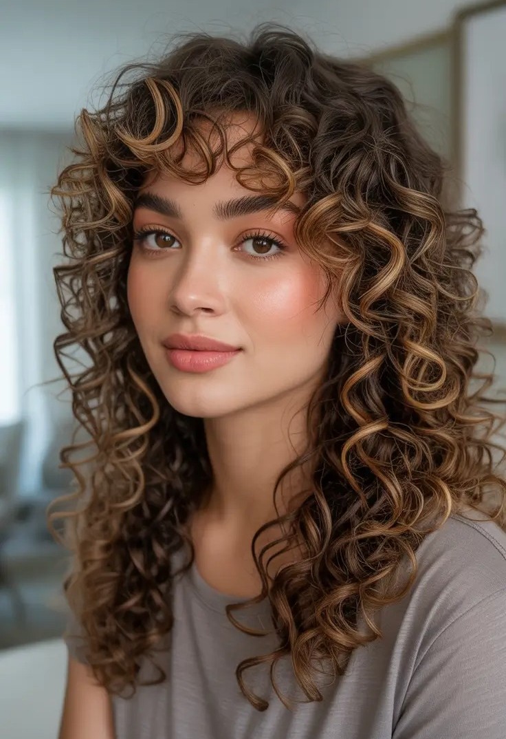 4. Bouncy Curls with Soft Bangs