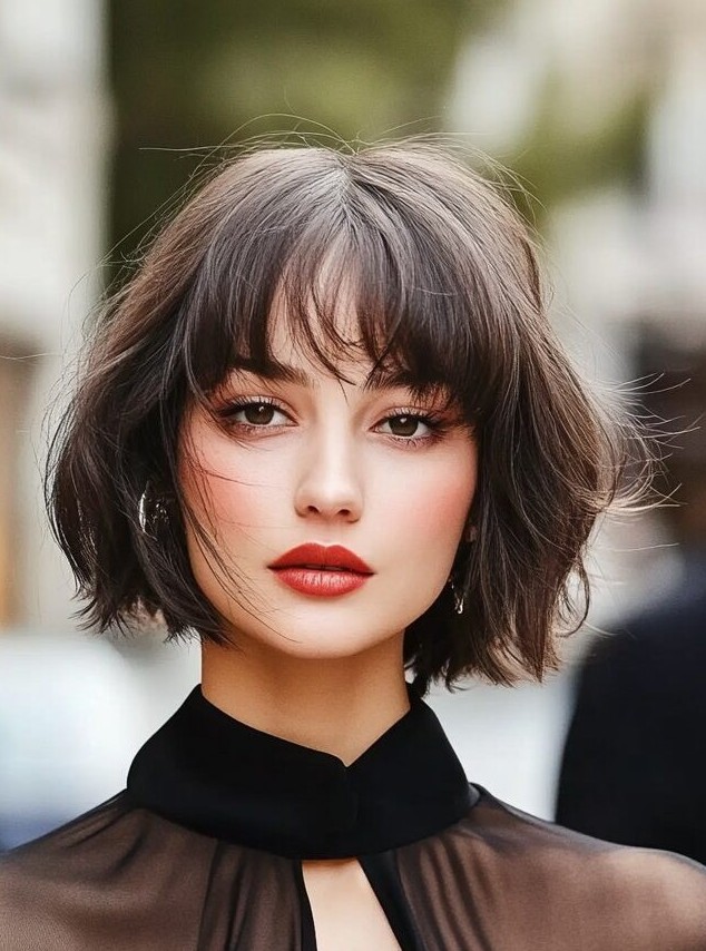 The French bob haircut is a chic, short hairstyle that embodies effortless Parisian style and modern elegance. Typically cut at chin length or slightly above, this bob features soft edges and often pairs with wispy or blunt bangs for a timeless look. The French bob works beautifully on straight, wavy, and slightly curly hair while enhancing natural texture without heavy styling. Its lightweight shape frames the face, highlighting cheekbones and jawlines.