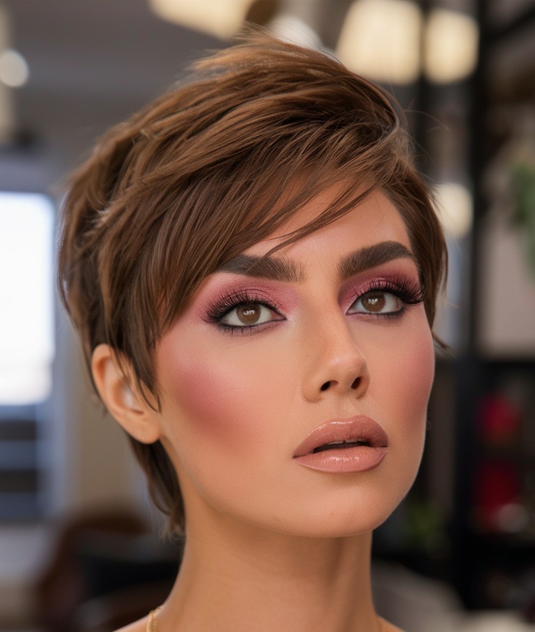 8. Pixie Cut with Swept Back Layers