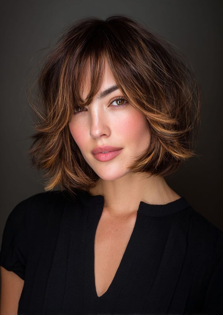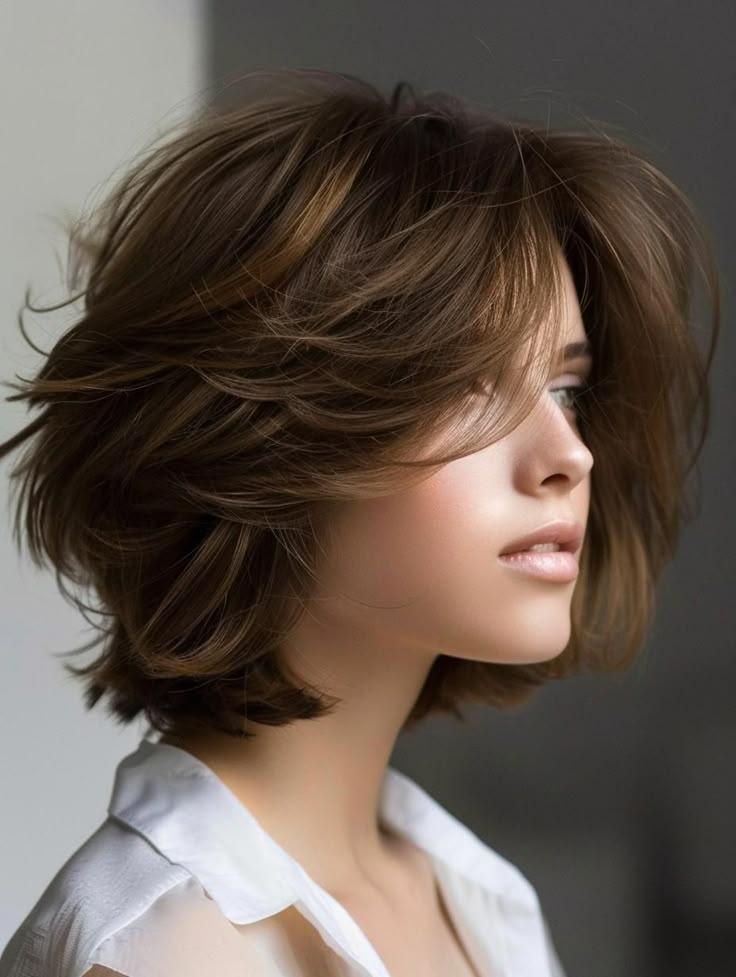 Feathered layers have a light and airy texture, creating softness and natural volume. This style works well for women who want gentle movement without adding heaviness. Use a lightweight mousse or foam to style and keep hair looking full and lively.