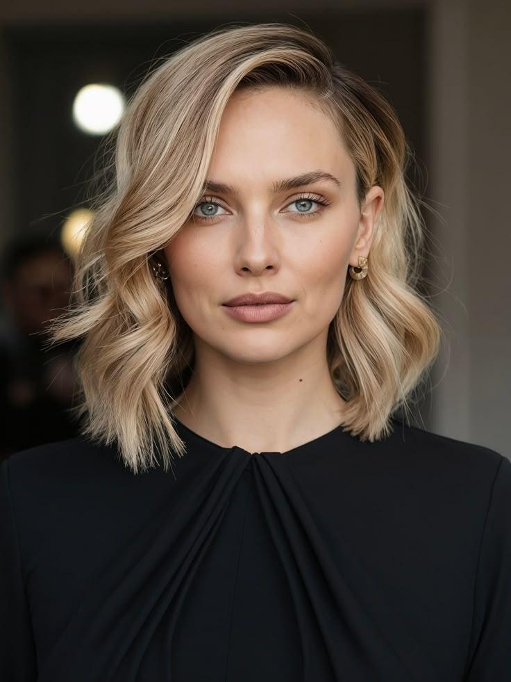 A long bob styled with soft waves swept to one side adds body and frames the face. This look adds fullness and helps conceal thin areas. Use a curling wand to create loose waves and finish with a light hairspray for hold that feels natural.