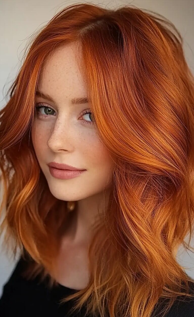 Combining rich red and warm orange tones, this vibrant color adds depth, shine, and a bold statement to any hairstyle. Balayage or subtle highlights can create a multidimensional effect for a more natural finish. Bright copper hair color is perfect for transforming your style and standing out with a warm, radiant glow this year.