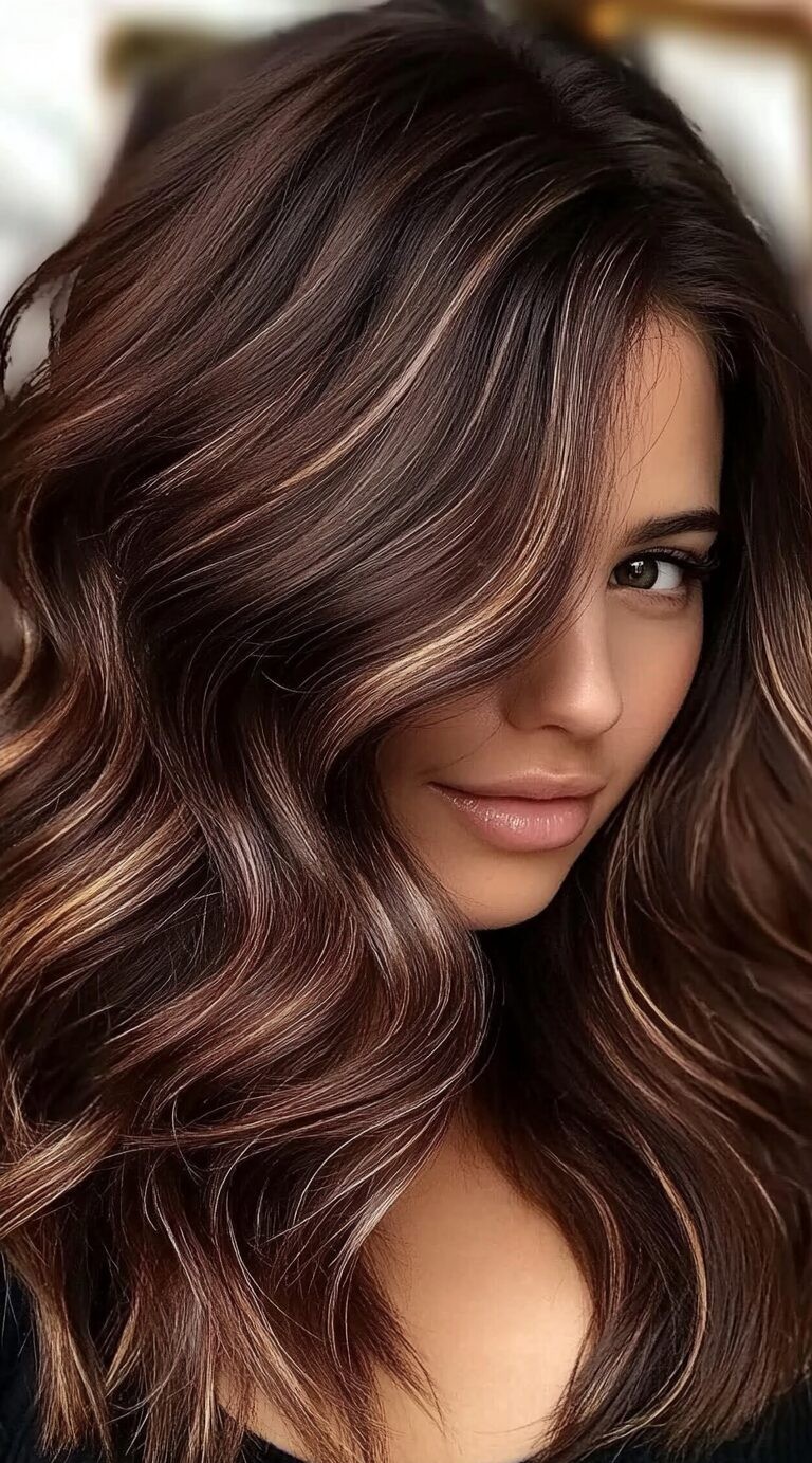 Caramel mocha hair color is a luxurious blend of deep brown and warm caramel tones which creates a soft, multidimensional look. This versatile shade adds depth, shine, and a natural sun-kissed glow to any hairstyle. Caramel mocha works beautifully with balayage or subtle highlights while giving a low-maintenance finish. Embrace caramel mocha for a trendy, and effortlessly chic hairstyle this year.