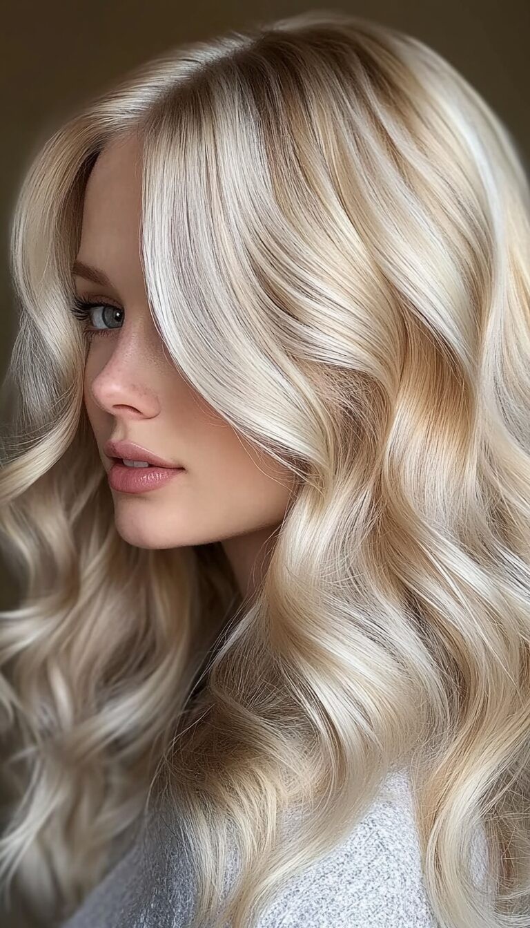 Pearl blonde hair color is a soft, shimmering shade that blends cool blonde tones with subtle silvery highlights which creates an elegant and modern look. It works beautifully with balayage or highlights while offering a low-maintenance finish. This hair color brightens the face and enhances natural texture.