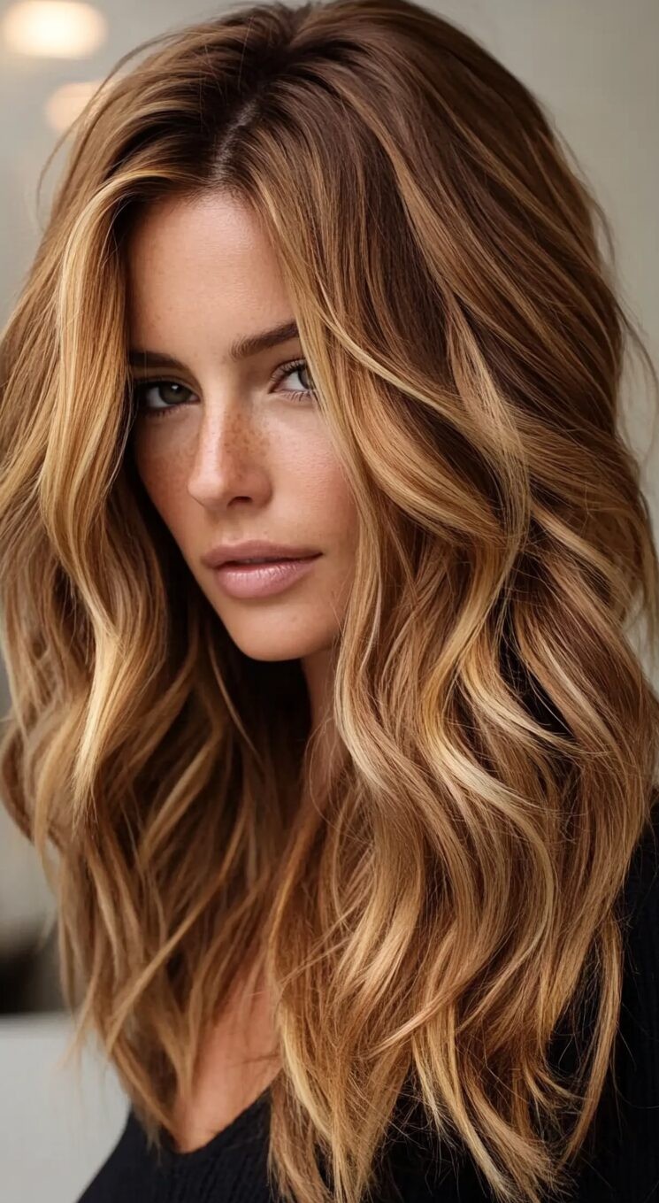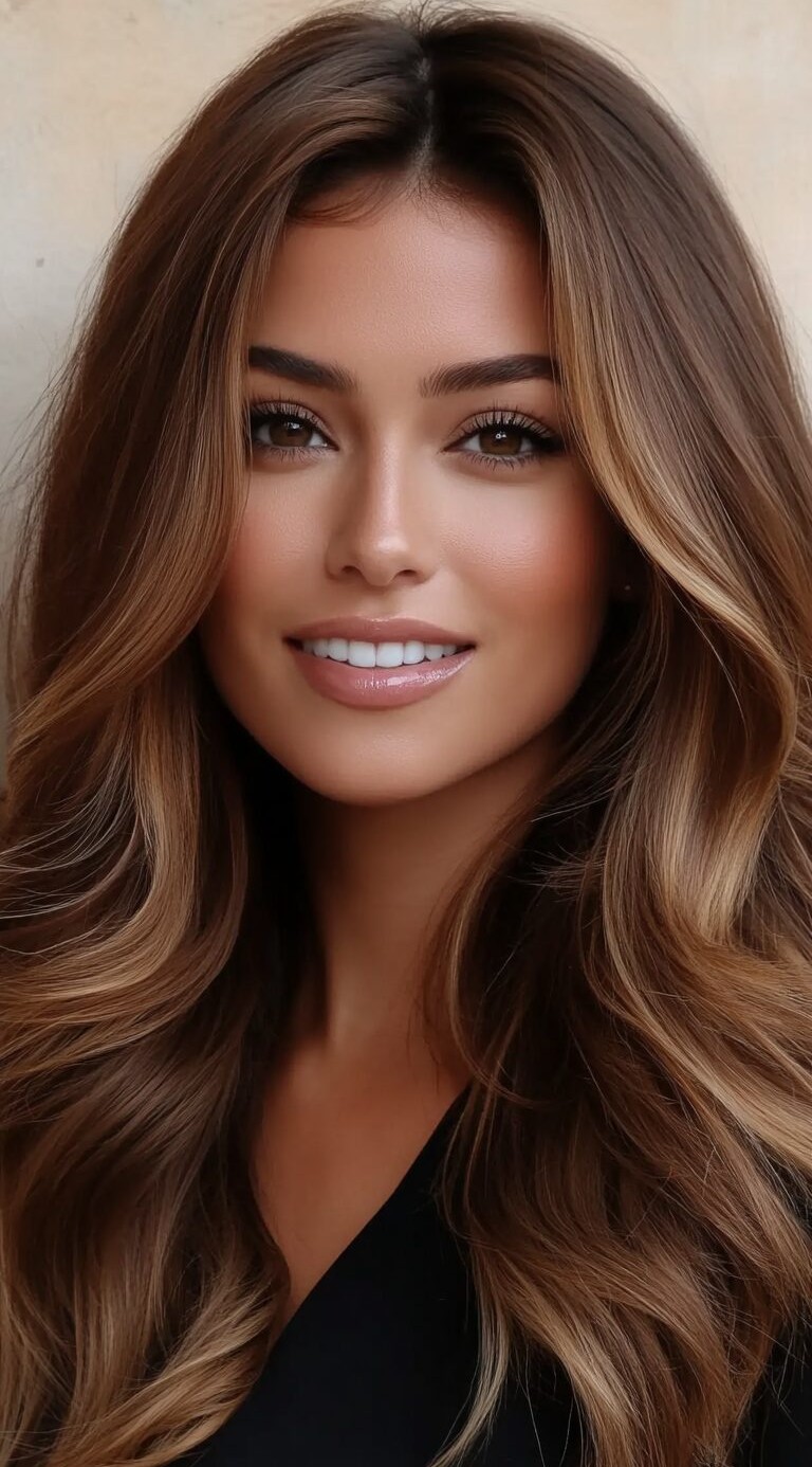 This look combines a rich brunette base with warm caramel highlights around the face, instantly brightening your features and adding dimension. The subtle contrast enhances layers, waves, and curls while giving hair a natural, sun-kissed effect. Perfect for all hair lengths and textures, this style works beautifully with balayage or hand-painted highlights for a soft finish.