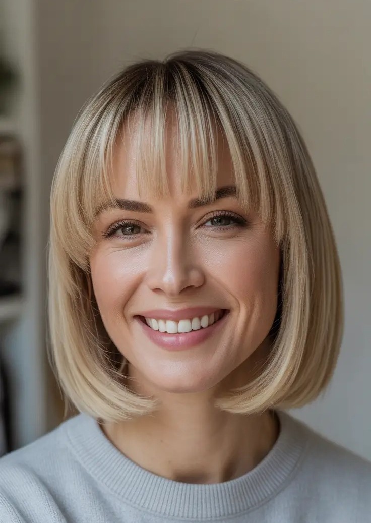 8. Blonde Bob with Polished Bangs