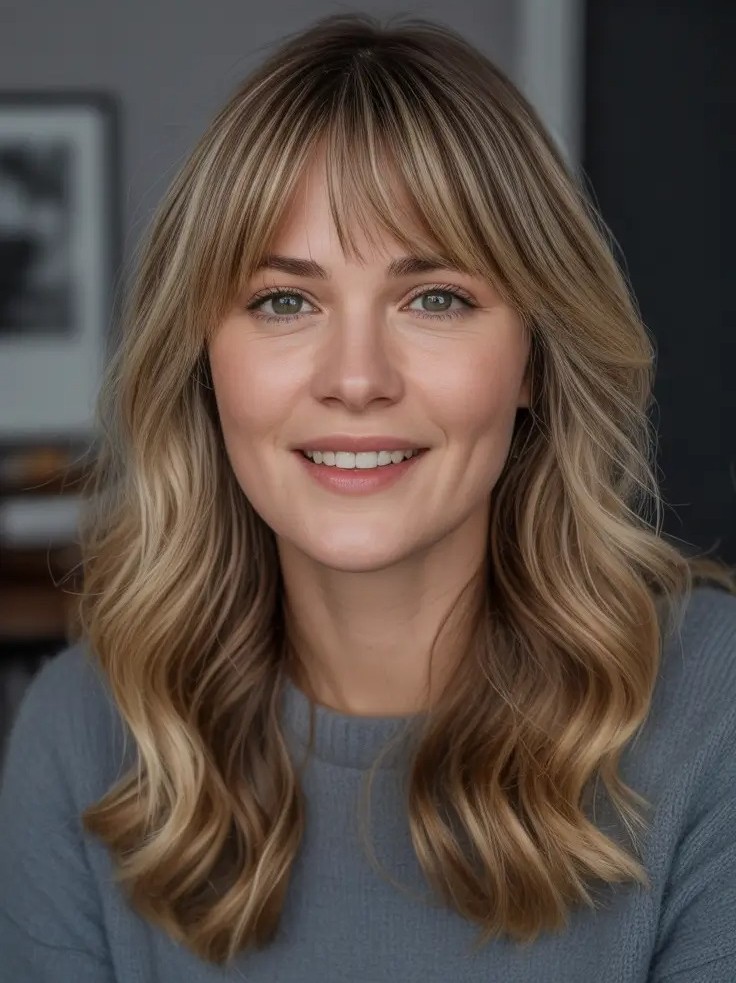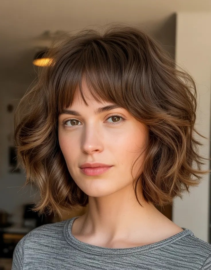 4. Tousled Wavy Bob with Soft Bangs