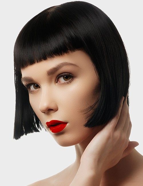 This cut is best suited for straight hair, where the blunt shape shows most clearly. However, women with slightly wavy hair can also wear it with suitable smoothing techniques. It pairs well with center parts for a striking, symmetrical look.