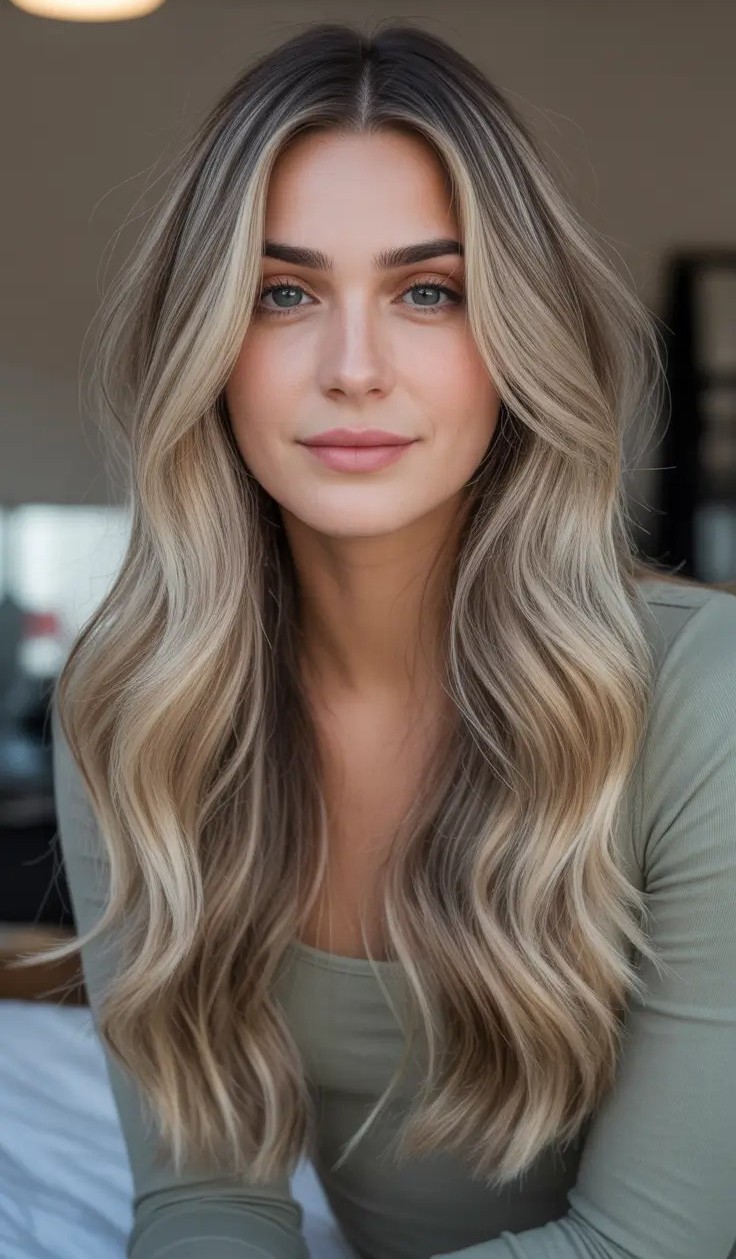 10. Ash Blonde Balayage Waves