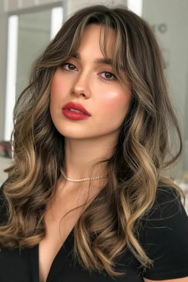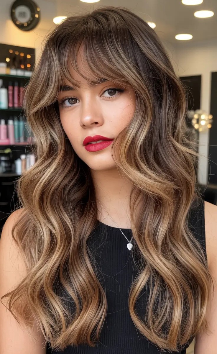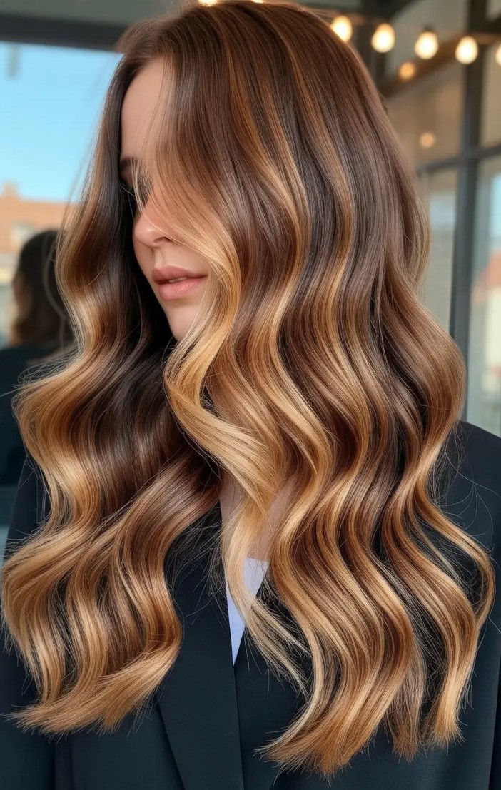 Warm brunette balayage with golden highlights is the perfect way to add depth, dimension, and a sun-kissed glow to your hair. Starting with rich chocolate or chestnut brown roots, soft golden tones are painted throughout the mid-lengths and ends for a natural effect. This look brightens the complexion while maintaining a low-maintenance style. Whether styled straight, wavy, or curly, warm brunette balayage with golden highlights creates a luminous and chic finish that suits any season or occasion.