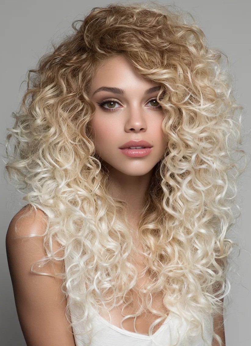 These curls create a statement look that enhances any outfit or occasion. Layers and subtle highlights can add extra dimension while curl-enhancing creams and leave-in conditioners keep frizz under control and shine at its peak. Perfect for women embracing their natural texture, this hairstyle offers versatility from casual, carefree waves to elegant, red-carpet-ready curls. Long voluminous curls are a celebration of individuality, confidence, and the beauty of natural hair.