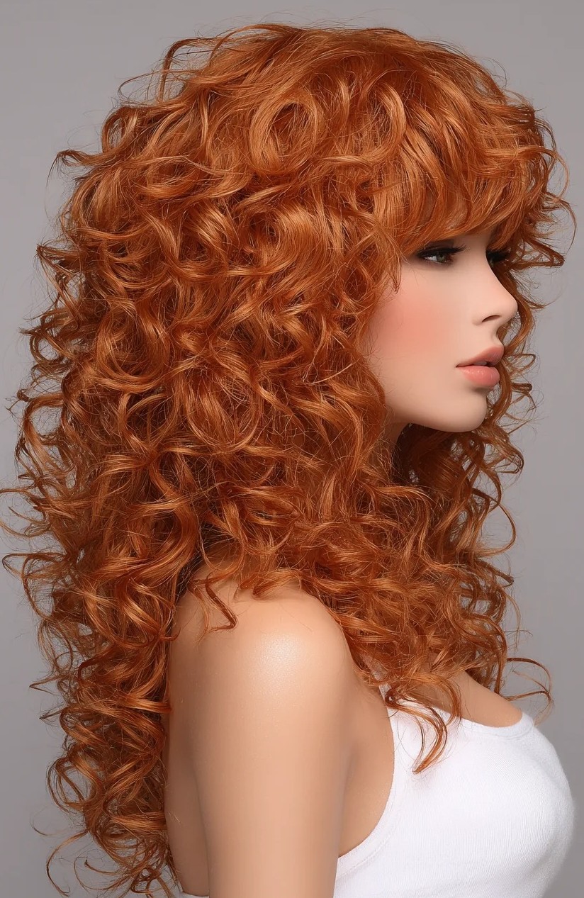 Copper long curly hair is a stunning way to combine vibrant color with natural texture. The warm, rich copper tones bring depth and dimension which enhances the shine and movement of long curls. Layers can add extra bounce while curl-defining creams and lightweight leave-in conditioners keep frizz under control and curls perfectly shaped. This hairstyle celebrate individuality, confidence, and the beauty of naturally curly hair while making every strand a statement of style and personality.