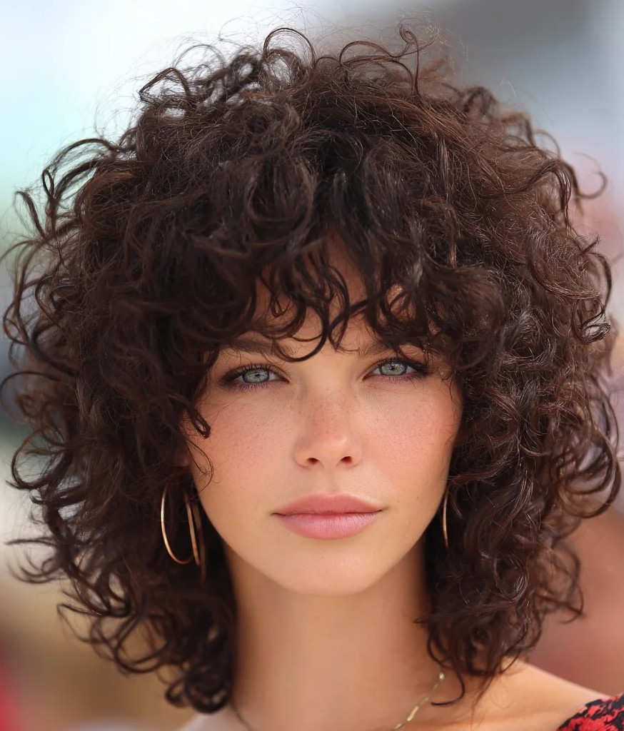 12. Mid-Length Curly Hairstyle with Soft Bangs