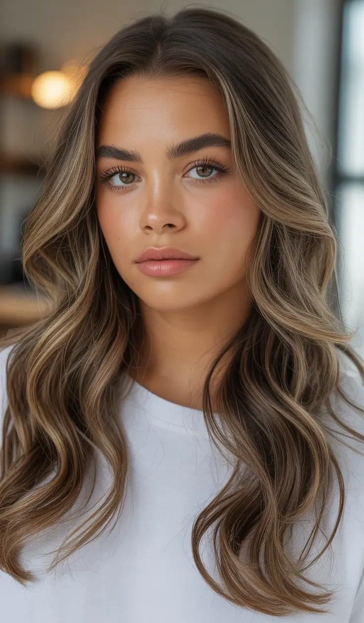 Layers that start below the chin create vertical lines, balancing fuller cheeks and softening the jawline. Loose, natural waves enhance texture without adding width while giving the hair a soft flow. A side part or subtle face-framing layers further slim the face and highlight your features.