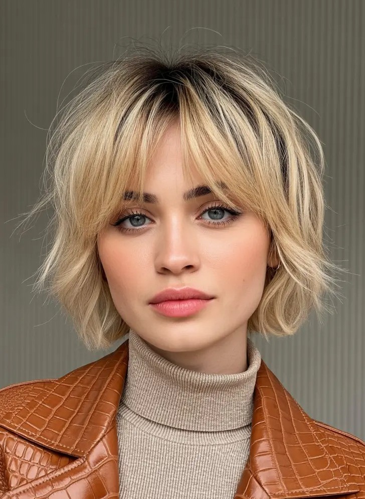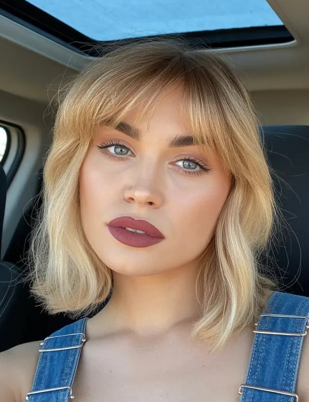 Short bob with natural bangs is an effortless hairstyle that suits all face shapes. Its clean, chin-length cut adds structure while maintaining a soft and feminine vibe. Natural bangs blend seamlessly with the bob which frames the face without appearing heavy or over styled. The short bob with natural bangs balances elegance and simplicity.