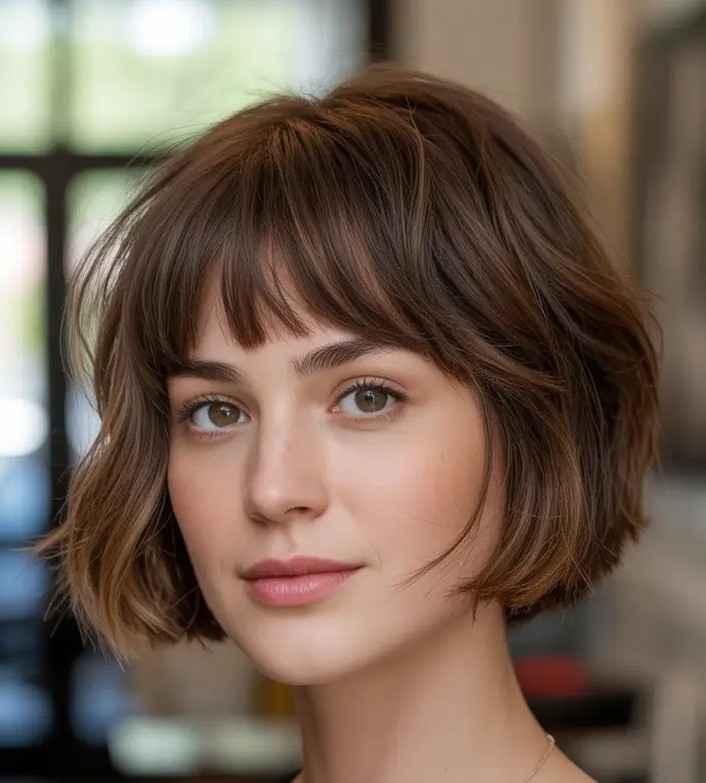5. Tousled French Bob with Wispy Bangs