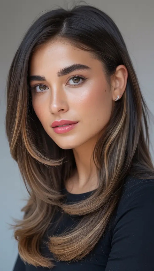 Long layers add movement and dimension which keeps hair light and voluminous while side bangs frame the face beautifully. Perfect for straight or slightly wavy hair, this hairstyle works for everyday wear as well as formal occasions. The combination of layered strands and side bangs creates a flattering, versatile look that enhances natural shine and texture.