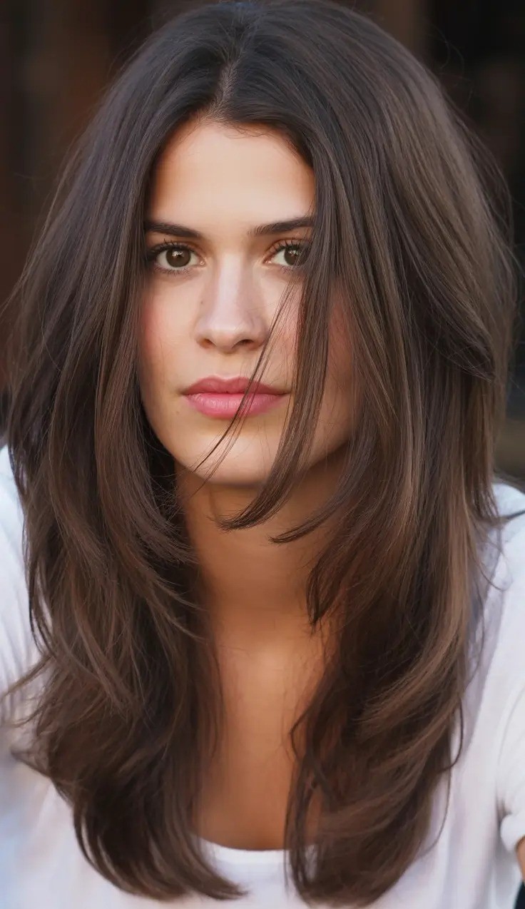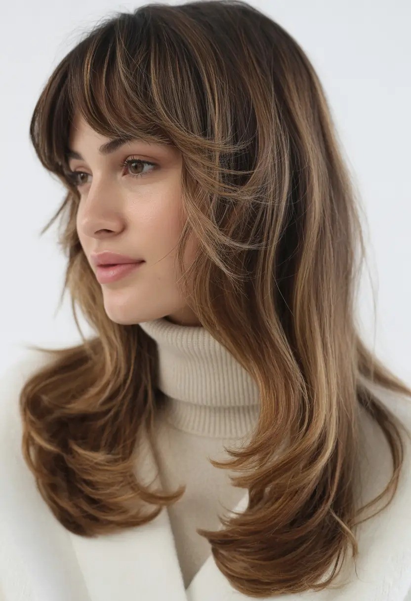 Layered hair with brown highlights is a stunning way to add depth, dimension, and warmth to your hairstyle. The layers create movement and texture while brown highlights accentuate the hair’s natural tones, giving a sun-kissed effect. This combination works beautifully on short, medium, or long hair and enhances straight, wavy, or curly textures. Face-framing layers paired with subtle highlights can brighten the complexion and highlight facial features.
