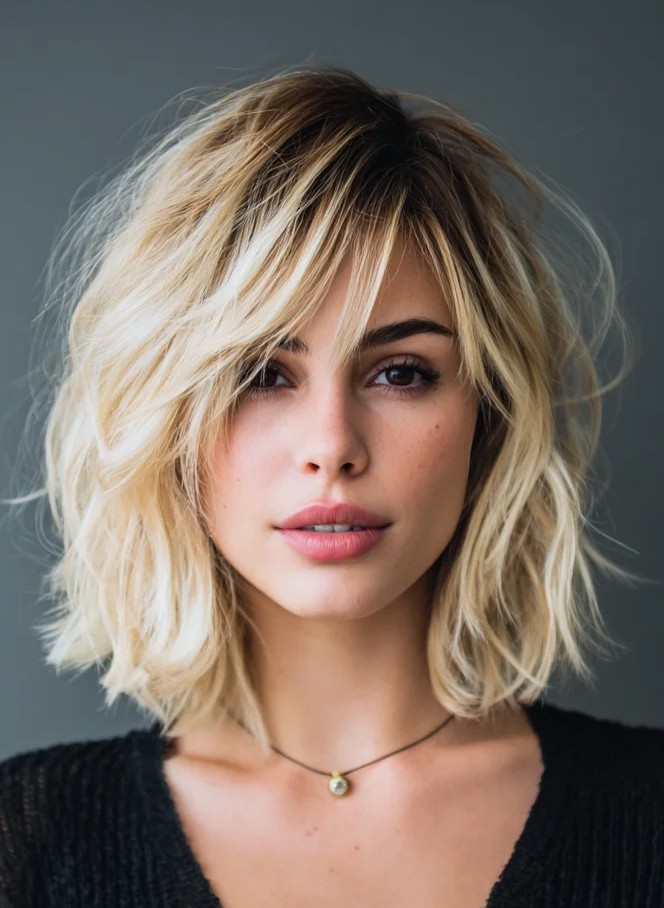 2. Shoulder-Length Blonde Lob with Face-Framing Layers