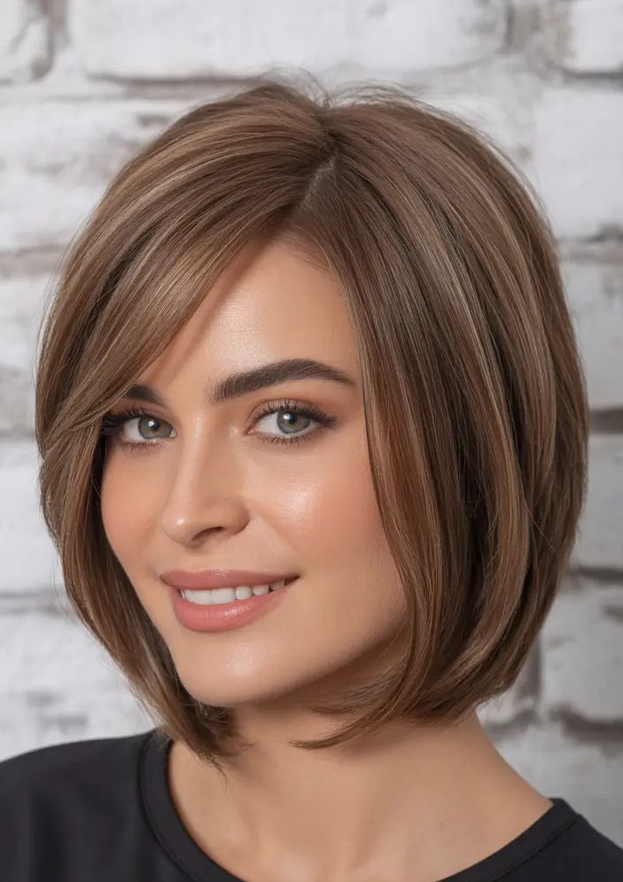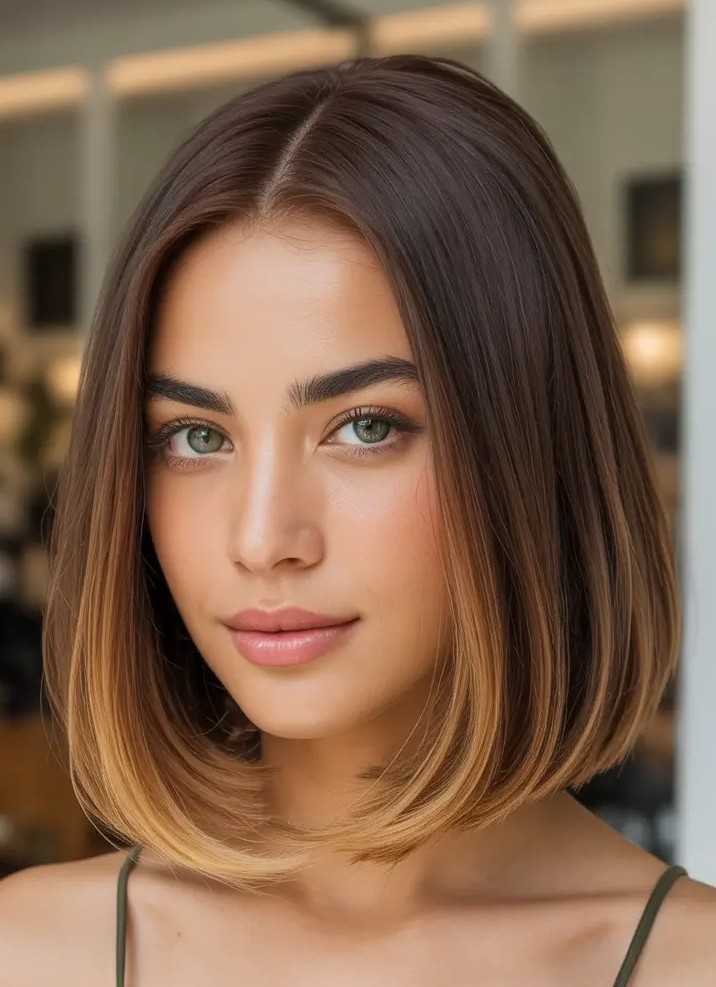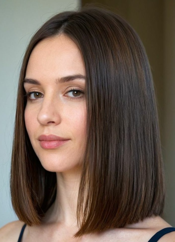 Cut straight across at the ends, this medium-length bob creates a sharp, polished silhouette that beautifully frames the face. Perfect for straight hair, It offers a sleek, low-maintenance style that’s versatile enough for casual outings and perfect for straight hair. The blunt cut adds a modern edge while maintaining classic elegance, and can be enhanced with subtle highlights, balayage, or bold colors for extra dimension.