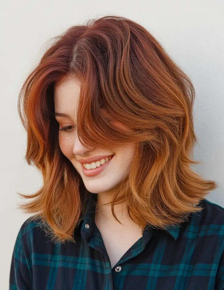 11. Medium Copper Hairstyle with Layers