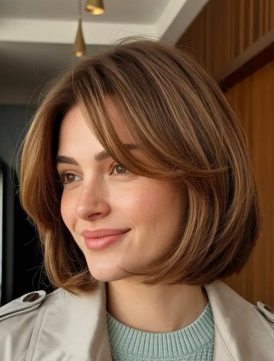 4. Layered Bob with Face-Framing Bangs