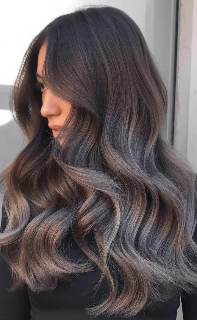9. Mushroom Brown Hair with Smoky Grey Balayage