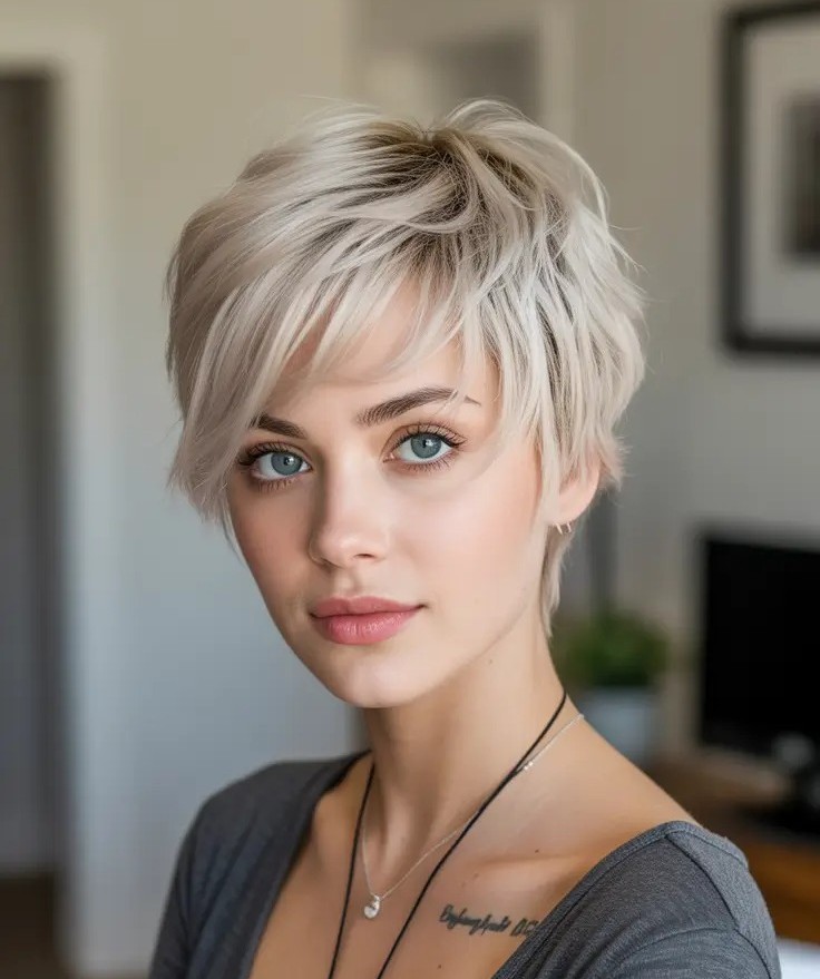 13. Platinum Pixie with Shaggy Texture