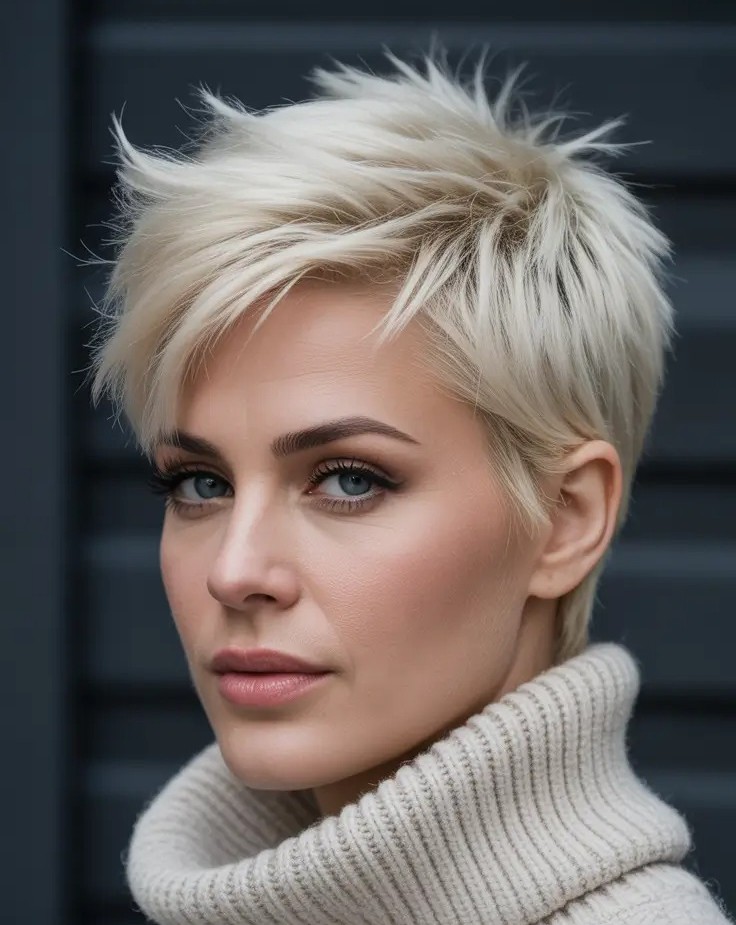 An edgy pixie with micro bangs is a bold, fashion-forward hairstyle that instantly elevates your look with a daring twist. The ultra-short, textured pixie cut provides a modern, structured shape while the micro bangs add a striking, statement-making detail. This combination works beautifully to accentuate the eyes and cheekbones while giving the face a sharp, defined appearance. Pair it with vibrant hair colors or subtle highlights to make this pixie truly stand out.