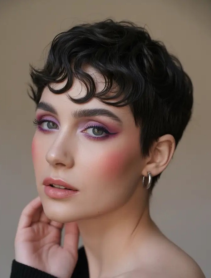 A soft wavy pixie is a chic and feminine short haircut that blends gentle waves with a lightweight and textured shape. This style adds natural movement and volume while making it especially flattering for fine to medium hair. The soft waves create a relaxed look while framing the face beautifully and enhancing facial features. Perfect for both casual days and elegant occasions, the soft wavy pixie offers easy styling with minimal effort.