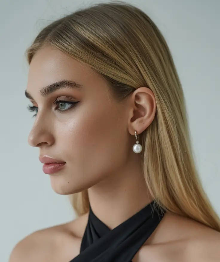This long, ultra-straight look features precise smoothing from roots to ends which creates a sharp and polished silhouette. The clean center part adds symmetry and enhances facial balance while making it especially flattering for oval and heart-shaped faces. The sculpted finish gives the hair a glossy, glass-like effect that feels high-fashion yet wearable.