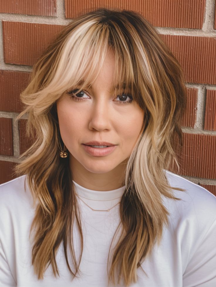 This shag variation relies on highlights to elevate the retro feel. Caramel, honey, or ash-blonde streaks paired with face-framing layers bring light and depth to longer hair. It’s a subtle way to add sophistication while maintaining a laid-back retro vibe.
